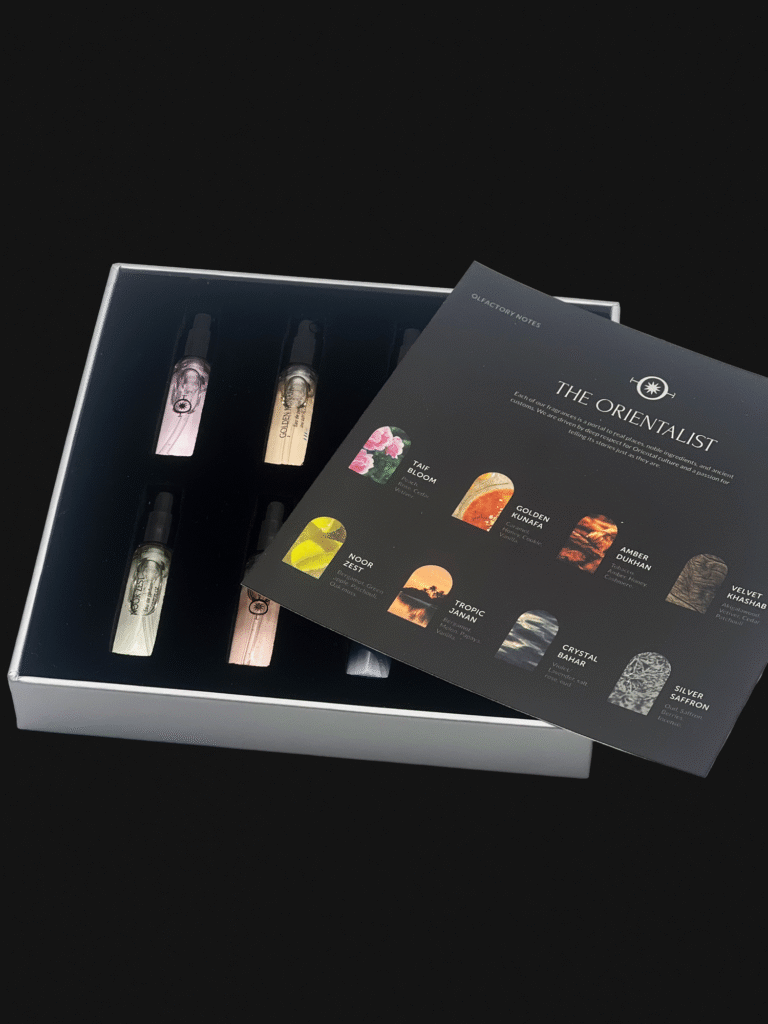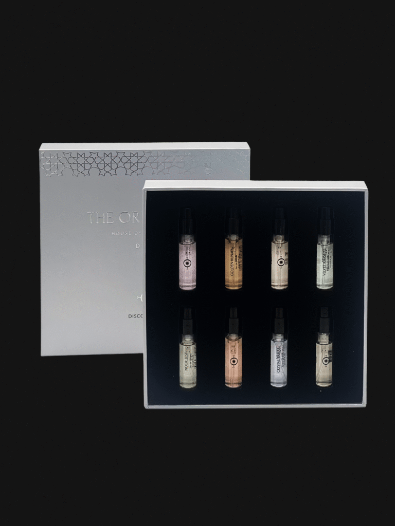 The Discovery Set offers eight meticulously crafted scents, each revealing a distinct facet of Eastern heritage. Explore them at your leisure, and when you select your signature fragrance, the cost of the set will be credited toward your first full-size bottle.